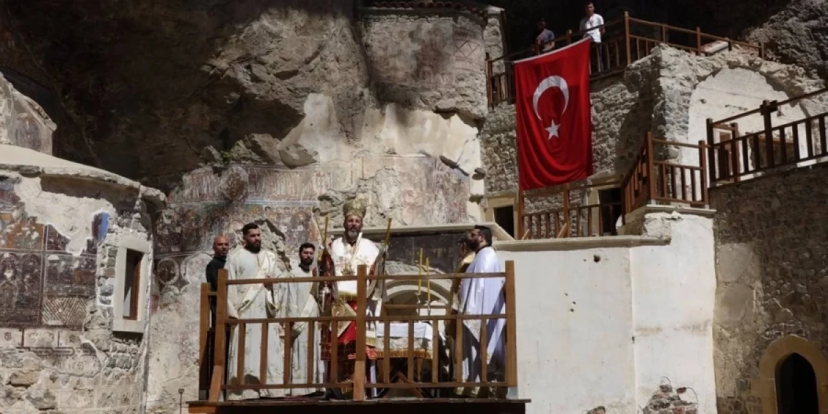 Πριν τελεστεί τελικά σήμερα η Θεία Λειτουργία, οι Τούρκοι επιχείρησαν να…φτιάξουν κλίμα. Το Ινστιτούτο Ερευνών Μαύρης Θάλασσας στο Τεχνικό Πανεπιστήμιο Καραντενίζ εξέδωσε ανακοίνωση σχετικά με την ορθόδοξη λειτουργία που θα τελεστεί στη Μονή Σουμελά. Η δήλωση περιγράφει λεπτομερώς τον ιστορικό ρόλο του Οικουμενικού Πατριαρχείου, την οικουμενικότητα του οποίου δεν αναγνωρίζουν επ΄ουδενί οι Τούρκοι, και τα σημερινά του σύνορα.