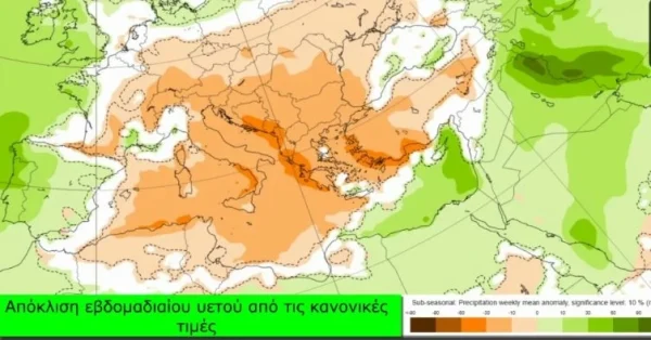 Τα προγνωστικά στοιχεία συγκλίνουν στο ότι από Δευτέρα 8/12 έως και Σάββατο 14/12 ο καιρός στη χώρα μας θα επηρεαστεί από μια έντονη και επίμονη αντικυκλωνική επέκταση που καλύπτει την κεντρική Μεσόγειο, τα Βαλκάνια και την Ελλάδα. Σύμφωνα με μεγάλα μοντέλα αποκλίσεων (ECMWF), η Ελλάδα βρίσκεται στο επίκεντρο των αρνητικών αποκλίσεων υετού, δηλαδή πολύ κάτω από τα κανονικά επίπεδα βροχόπτωσης.