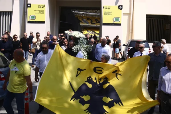 Ξεχώρισε το συγκλονιστικό πανό που έγραφε: «Μήτσο γεια σου, ήρθαν τα παιδιά σου», ενώ άλλοι οπαδοί κρατούσαν πλακάτ με τη φράση: «Πατέρα, σε ευχαριστούμε για όλα», αναγνωρίζοντας τον ρόλο που είχε για δεκαετίες ως εμψυχωτής και ψυχή της κερκίδας.