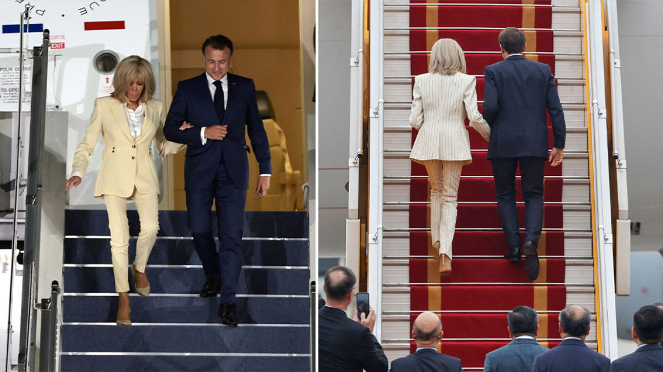 Μπριζίτ και Εμανουέλ Μακρόν μετά τον σάλο και τα “χαστούκια|” κατέβηκαν… αγκαζέ την κλίμακα του προεδρικού αεροσκάφους στην Ινδονησία