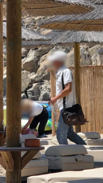 Ο πλανόδιος μασέρ προσεγγίζει τους λουόμενους με τον τιμοκατάλογο των υπηρεσιών στο χέρι.