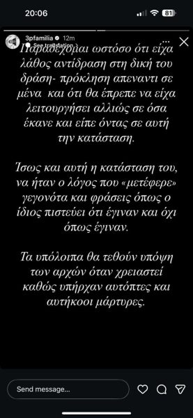 Στην ανάρτησή του, ο κ. Παππάς παραδέχεται ότι υπήρξε ένταση και προβλήματα ισορροπίας στη συμπεριφορά του, χωρίς όμως να δίνει λεπτομέρειες για την ίδια την επίθεση: