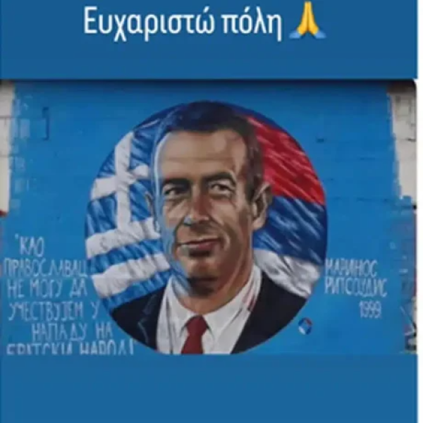 Ο Τζόκοβιτς θυμήθηκε δημοσίευσε μια τοιχογραφία από το Droćol, που απεικονίζει τον Έλληνα Ανθυποπλοίαρχο Μαρίνο Ριτσούδη, ο οποίος αρνήθηκε να βομβαρδίσει τη Σερβία το 1999. Μάλιστα, έγραψε στα ελληνικά με ένα μικρό… ορθογραφικό λάθος «Ευχαριστώ πόλη».