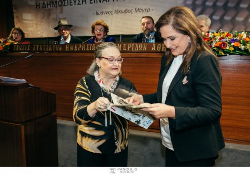 Στην εκδήλωση μίλησαν για τον Παύλο Μπακογιάννη, η πρόεδρος της ΕΣΗΕΑ Μαρία Αντωνιάδου, ο δημοσιογράφος Γιάννης Βλαστάρης, o συγγραφέας Βασίλης Βασιλικός, ο Μίμης Ανδρουλάκης, ενώ την εκδήλωση έκλεισε η Αλεξία Μπακογιάννη διαβάζοντας κείμενα του πατέρα της !