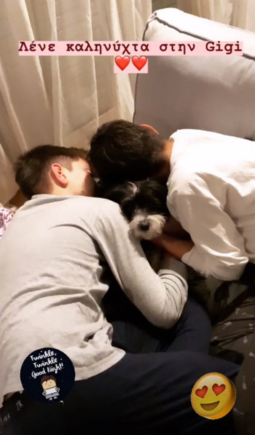 Το βράδυ της Τρίτης, η ηθοποιός και παρουσιάστρια ανέβασε στον προσωπικό της λογαριασμό στο Instagram μια φωτογραφία με των δύο γιων της μαζί με το σκυλί της οικογένειας, την Gigi.