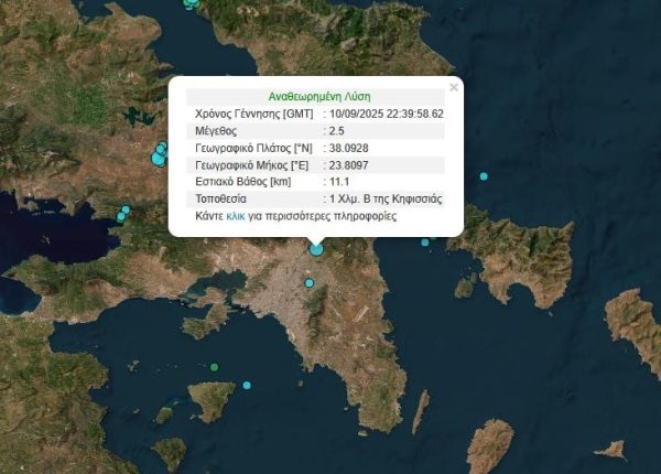 Νωρίτερα, το Γεωδυναμικό Ινστιτούτο είχε καταγράψει σεισμική δόνηση μεγέθους 2 Ρίχτερ με επίκεντρο το Χαλάνδρι, που έγινε ωστόσο αισθητή ακόμα και στα νότια προάστια, ενώ σειρά στο μεταμεσονύκτιο… κούνημα πήραν λίγο αργότερα δύο περιοχές εκτός Αττικής.