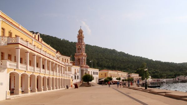 Φτάνοντας στο μικρό λιμάνι της Σύμης με το καράβι από την Ρόδο, σίγουρα αυτό που τραβάει αμέσως το βλέμμα του κάθε επισκέπτη είναι το επιβλητικό αιχμηρό μπαρόκ καμπαναριό ενός κάτασπρου μοναστηριού που προεξέχει αισθητά μέσα από τον σχεδόν γεωμετρικό ορίζοντα του νησιού.