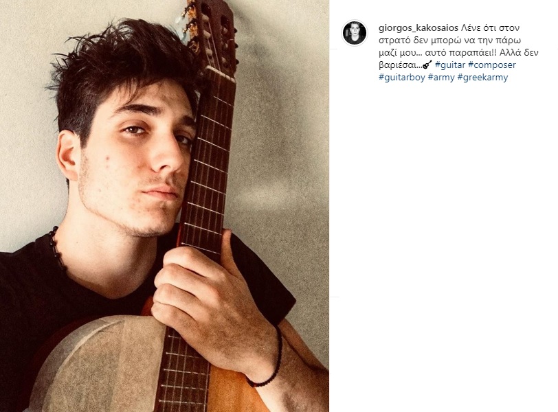 Το μεσημέρι της Δευτέρας, ωστόσο, επανήλθε με νέα ανάρτηση στον προσωπικό του λογαριασμό στο Instagram. Συγκεκριμένα, ο Γιώργος δημοσίευσε μια selfie που έβγαλε με την κιθάρα του, στη λεζάντα της οποίας έγραψε χαρακτηριστικά: «Λένε ότι στον στρατό δεν μπορώ να την πάρω μαζί μου… αυτό παραπάει!! Αλλά δεν βαριέσαι… #guitar #composer #guitarboy #army #greekarmy».