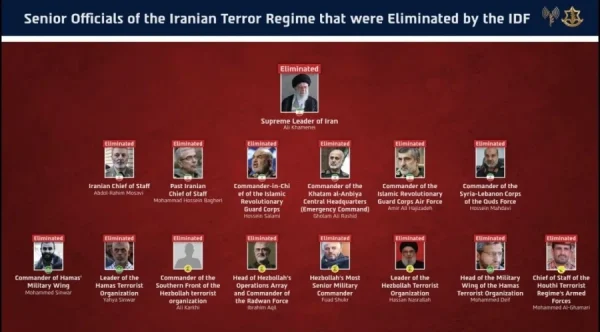 Την εξάλειψη όλης της ηγετικής ομάδας του Ιράν, αλλά και των στενών «συμμάχων» τους με επικεφαλής τον αγιατολάχ Αλί Χαμενεΐ ανακοίνωσε ο ισραηλινός στρατός, το βράδυ της Κυριακής.