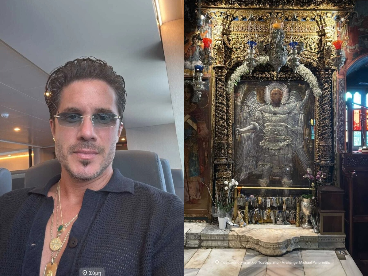 Κενό στην περιοδεία του είχε ο Νίκος Οικονομόπουλος και ἀδραξε την ευκαιρία να πάει για προσκύνημα στο πανέμορφο μοναστήρι του Ταξιάρχη του Πανορμίτη στην Σύμη.