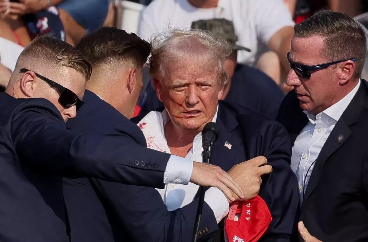 Στην Πενσιλβάνια, σε προεκλογική συγκέντρωση, πυρά εναντίον του τον τραυμάτισαν στο αυτί, σε μια επίθεση που λίγο έλειψε να εξελιχθεί σε πολιτική τραγωδία. Το περιστατικό άνοιξε σκληρή συζήτηση για επιχειρησιακές αποτυχίες στην προστασία του.