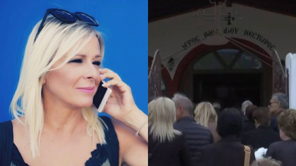 Τραγικές φιγούρες είναι η κόρη της, τα αδέρφια της Γιώργος και Δέσποινα και η μητέρα της που στέκονται δίπλα στη σορό και δέχονται τα συλληπητήρια των οικείων τους που παρευρέθηκαν στην εκκλησία για να συνοδεύσουν τη δημοσιογράφο στην τελευταία της κατοικία στο Κοκκινοχώρι Καβάλας, από όπου καταγόταν.