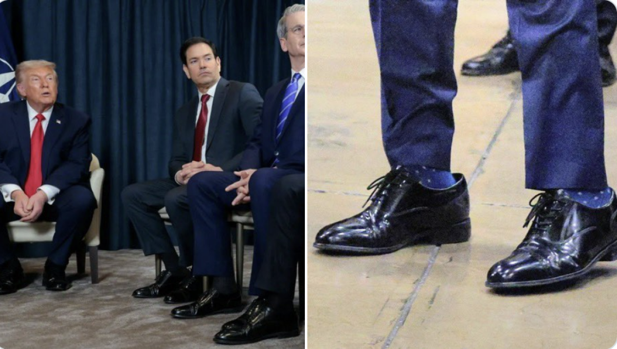Στα κοινωνικά δίκτυα, μάλιστα, κυκλοφορούν φωτογραφίες αξιωματούχων της αμερικανικής κυβέρνησης που εμφανίζονται με το ίδιο μοντέλο παπουτσιού, ενώ ιδιαίτερη αίσθηση προκάλεσε μια εικόνα του υπουργού Εξωτερικών Marco Rubio, στην οποία φαίνεται να φορά ένα ζευγάρι που μοιάζει εμφανώς μεγαλύτερο από το νούμερό του.