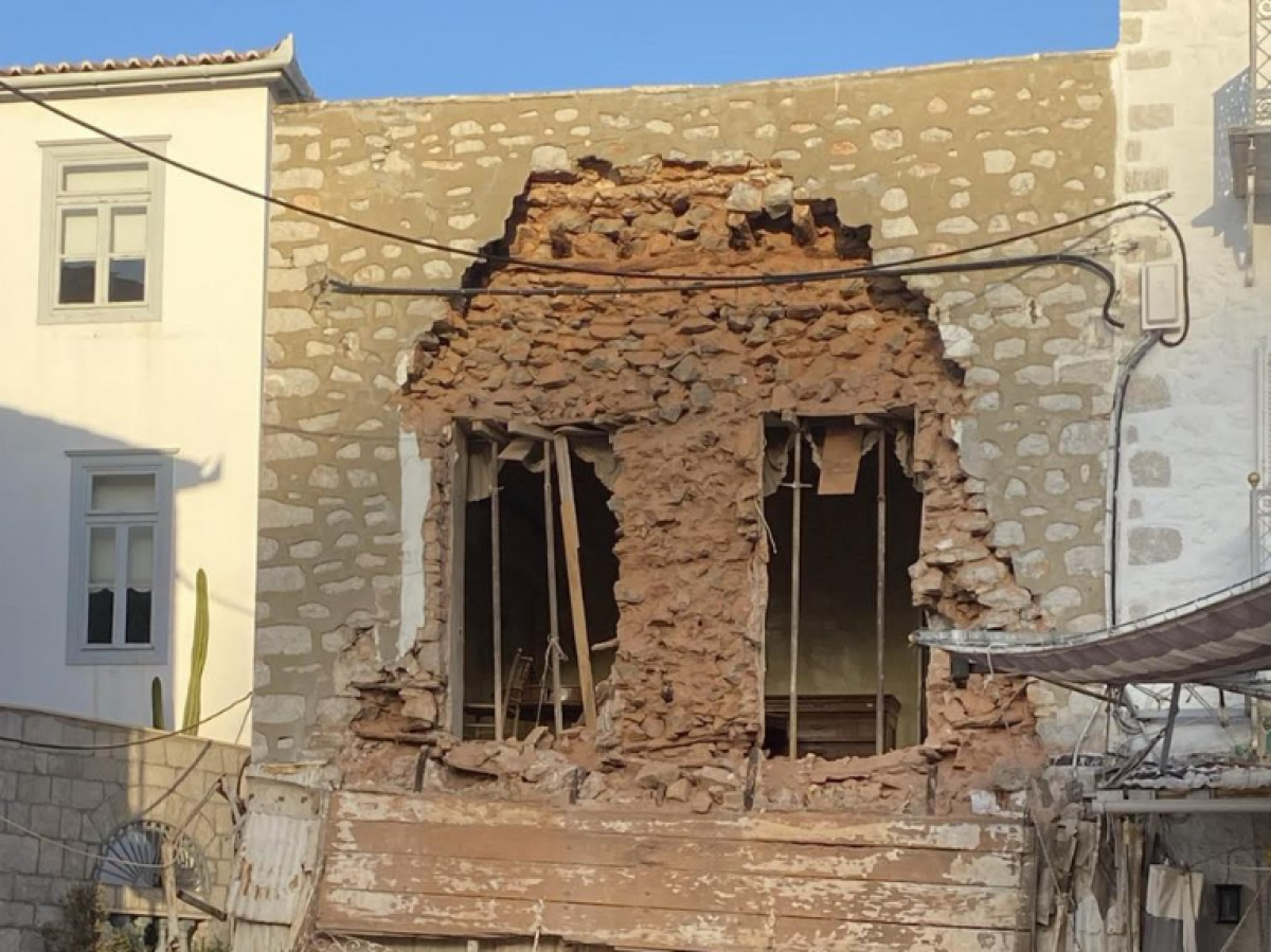 Η πρόσοψη εντός κτιρίου κατέρρευσε σήμερα το απόγευμα, σε κεντρικό δρόμο στην Ύδρα.