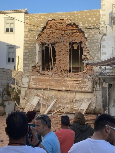 «Μέχρι πριν ένα με δύο χρόνια στέγαζε μία καφετέρια, ώσπου αυτή έκλεισε. Σήμερα το απόγευμα ξαφνικά κατέρρευσε, έπεσε το μπαλκόνι, οι μπαλκονόπορτες, ξηλώθηκε η πρόσοψη. Ο θόρυβος ήταν εκκωφαντικός. Από θαύμα δεν χτύπησε κανείς. Το κτίριο βρίσκεται σε κεντρικότατο σημείο, στο λιμάνι, ανάμεσα σε δύο καφετέριες», λέει αυτόπτης μάρτυρας του περιστατικού.