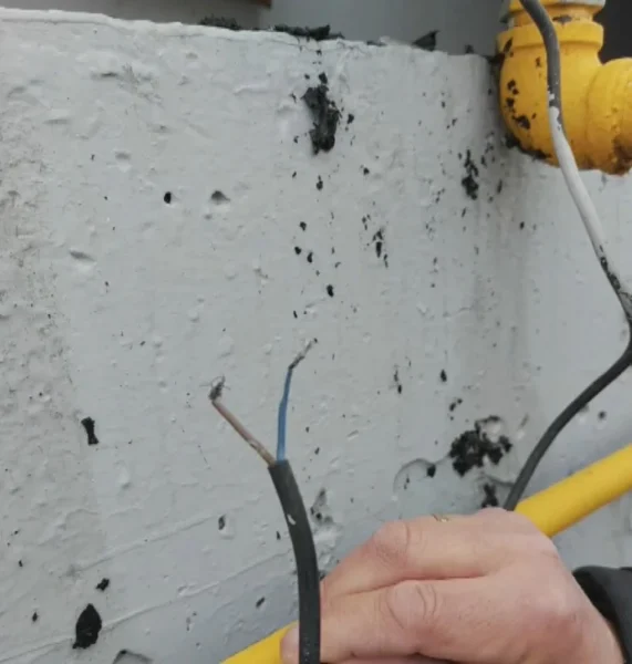 Παράλληλα, φωτογραφικό υλικό που περιλαμβάνεται στη δικογραφία φέρεται να καταδεικνύει ελλιπή ή εικονικά μέτρα ασφαλείας: ανιχνευτές που δεν ήταν συνδεδεμένοι στο ρεύμα, καλώδια βαμμένα ώστε να δίνουν την εντύπωση λειτουργίας και πρόχειρες ενώσεις σωληνώσεων αντί εγκεκριμένων συστημάτων.
