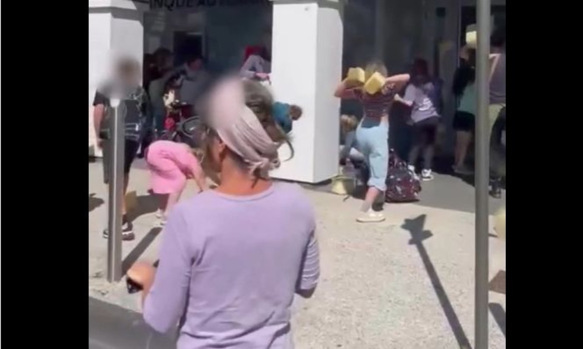 Δείχνει παιδιά κάτω των 10 ετών να πετάνε τούβλα από σφουγγάρι στην πρόσοψη μιας τράπεζας. Υπό τους ήχους μιας μπάντας με τύμπανα και πνευστά, ενθαρρύνονται από τους ενήλικες. Τα παιδιά το βλέπουν σαν παιχνίδι αγνοώντας τι κάνουν στην πραγματικότητα. «Τα παιδιά είναι όσο πιο χαρούμενα γίνεται και βάζουν όλη τους την δύναμη και την καρδιά σε αυτό το παιχνίδι. Μία τράπεζα, μετά δύο… και τέλος, όλα τα ΑΤΜ στο Ωριγιάκ υφίστανται αυτές τις επιθέσεις από αφρώδη τούβλα», αναφέρει το ρεπορτάζ της γαλλικής εφημερίδας.
