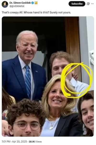 «Αυτό φαίνεται επεξεργασμένο στο Photoshop!» σχολίασε η συγγραφέας με τις περισσότερες πωλήσεις στη λίστα των New York Times, Μπριζίτ Γκάμπριελ, κάτω από την ανάρτηση του Μπάιντεν. Ένας άλλος χρήστης, καθώς και ο επιστήμονας Δρ. Simon Goddek ζούμαραν στο «ανατριχιαστικό» χέρι στο πίσω μέρος του λαιμού ενός από τα εγγόνια του. «Αυτό είναι ανατριχιαστικό. Ποιανού είναι αυτό το χέρι; Σίγουρα όχι δικό σου», έγραψε ο Goddek, ενώ ο άλλος χρήστης σχολίασε: «Ποιανού χέρι είναι αυτό;».