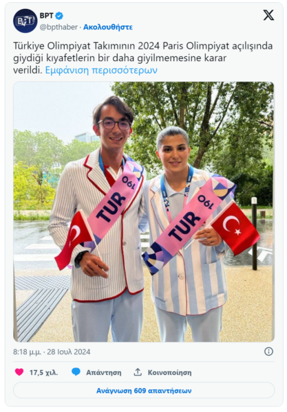 Στο «πυρ το εξώτερον» ρίχνουν οι Τούρκοι τις γαλανόλευκες στολές, με τις οποίες εμφανίστηκαν οι αθλητές της χώρας κατά την τελετή έναρξης των Ολυμπιακών Αγώνων, προκαλώντας αμέτρητα αρνητικά σχόλια.