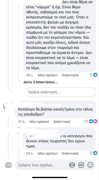 Χρήστες στα social media σχολιάζουν την κατάσταση με ειρωνικά και επικριτικά σχόλια, όπως: «Έτσι θέλουν και πιο ακριβά, ξέρουν ότι θα τους γδάρουν και πάνε», ενώ άλλος προσθέτει «Κατάλογο δεν είδαν;». Επίσης, κάποιος σχολίασε με χιούμορ, «Το καλαμάρι από χρυσό είναι;». Οι αντιδράσεις δείχνουν την απογοήτευση του κόσμου για τις υψηλές τιμές σε τουριστικά καταστήματα εστίασης.