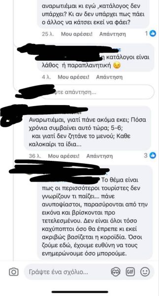 Σύμφωνα με σχόλια στα social media, ο κατάλογος είτε δεν είχε καθαρές τιμές είτε παρουσίαζε παραπλανητικές πληροφορίες. Σε πολλές περιπτώσεις, πιάτα όπως τα καλαμαράκια χρεώνονται ανά κιλό, γεγονός που δυσκολεύει τον επισκέπτη να υπολογίσει την τελική τιμή του λογαριασμού.