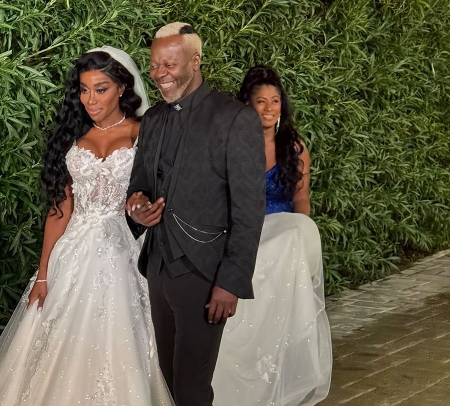 Η πρώην παίκτρια του Survivor εμφανίστηκε στο πλευρό του καλού της φίλου Zeraw, ο οποίος τη συνόδευσε και την παρέδωσε στον γαμπρό.
