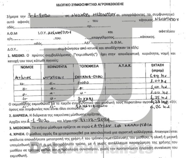 Το μισθωτήριο και φωτογραφικό ντοκουμέντο ενός εκ των εκμισθωμένων αγροτεμαχίων