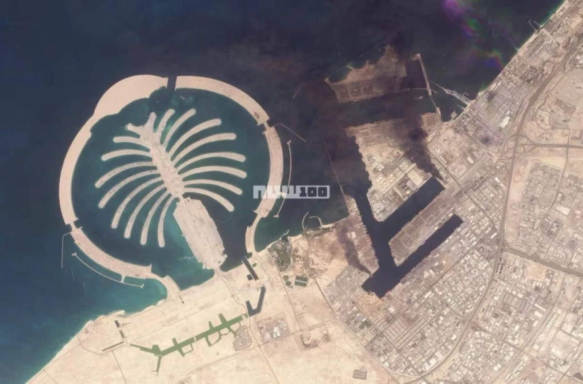 Δορυφορικές εικόνες αποκάλυψαν πυκνό μαύρο καπνό να υψώνεται από το λιμάνι Τζεμπέλ Άλι στο Ντουμπάι των Ηνωμένων Αραβικών Εμιράτων, μετά από αντίποινα του Ιράν σε όλη τη Μέση Ανατολή.