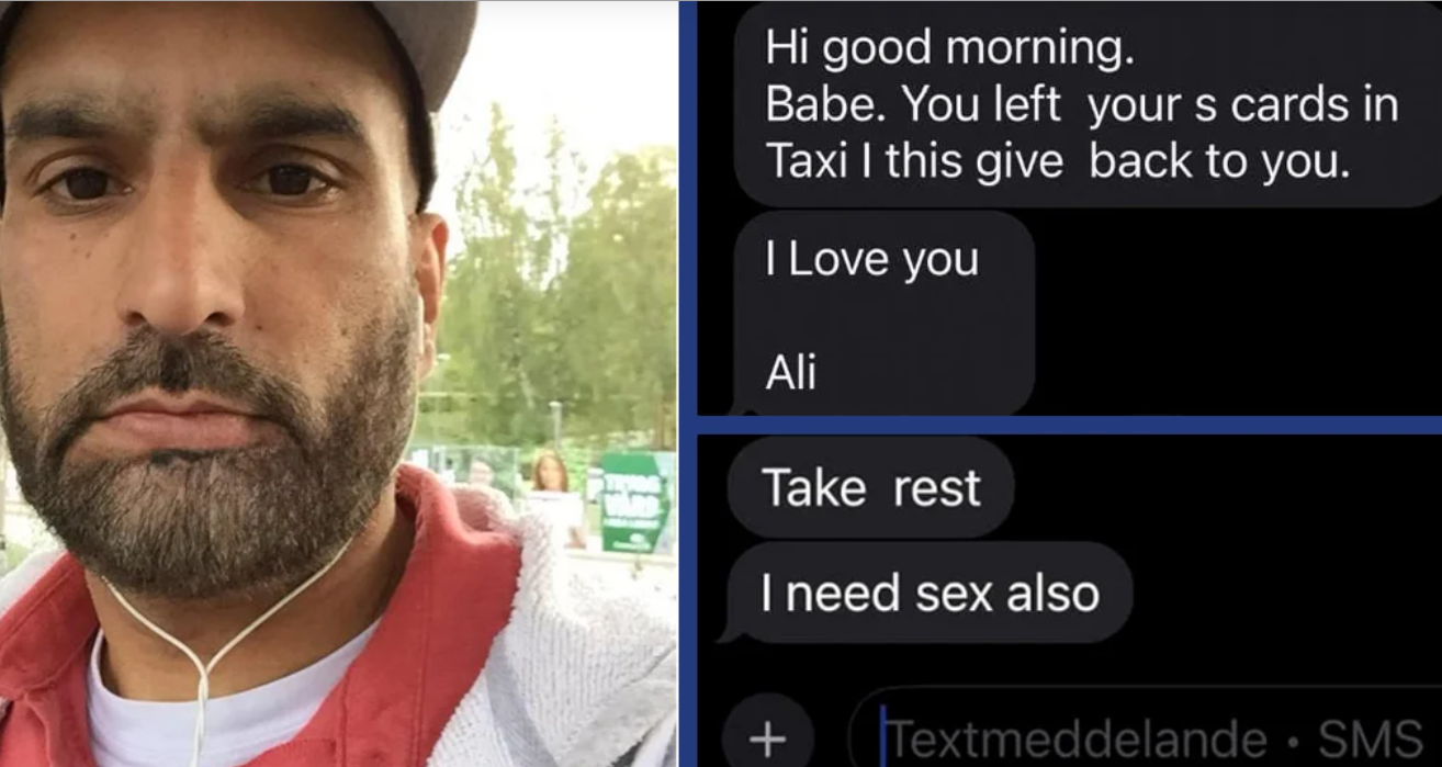 Την επόμενη μέρα, ο Μοχάμεντ έστειλε μήνυμα στη γυναίκα. Ξεκίνησε στέλνοντάς της μια φωτογραφία με τα πράγματά της στο κάθισμα του αυτοκινήτου με το μήνυμα: «Γεια σου, καλημέρα. Μωρό μου. Άφησες τις κάρτες σου στο ταξί. Σου τα επιστρέφω. Σ’ αγαπώ. Άλι». Αργότερα, έστειλε ένα επόμενο μήνυμα λέγοντας: «Κι εγώ χρειάζομαι σεξ».