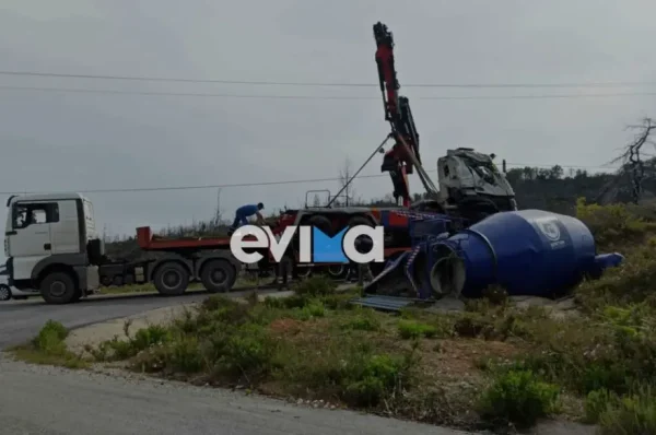 Ένα σοκαριστικό τροχαίο ατύχημα σημειώθηκε το απόγευμα της Πέμπτης στη Βόρεια Εύβοια, προκαλώντας τεράστια ανησυχία στους διερχόμενους οδηγούς. Μπετονιέρα που κινούνταν επί της Εθνικής Οδού Χαλκίδας – Αιδηψού ανετράπη στο 85ο χιλιόμετρο, κοντά στη διασταύρωση για το Δασικό Χωριό, υπό συνθήκες που μέχρι στιγμής παραμένουν αδιευκρίνιστες.