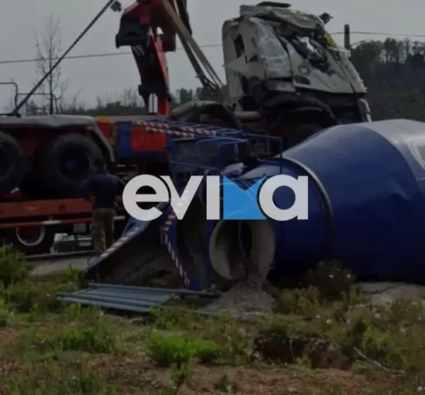 Σοκαριστικό τροχαίο στην Εύβοια: Μπετονιέρα κόπηκε στα δύο εν κινήσει – Σώος ο οδηγός