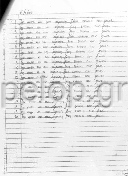 Η διευθύντρια, η οποία υπηρετεί σε σχολείο της ευρύτερης περιοχής της Πάτρας, σύμφωνα με την εφημερίδα Πελοπόννησος, απαιτεί από τους μαθητές να ζητούν συγγνώμη… γονατίζοντας, ενώ τους υποχρεώνει να γράφουν επανειλημμένα τη φράση: «Τον κουτό και τον χωριάτη ξένη έννοια τον τρώει».