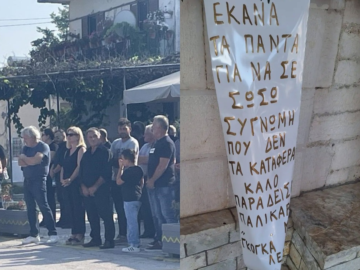 Έξω από τον ΙΝ της Αγίας Παρασκευής, όπου τελέστηκε η εξόδιος ακολουθία, δεκάδες στεφάνια απέδιδαν ύστατο φόρο τιμής στον 14χρονο.