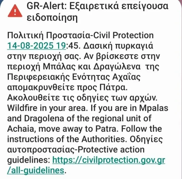 Μήνυμα από το 112 για την αναζωπύρωση στην Πάτρα