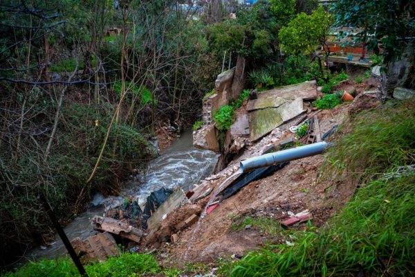Στον Άγιο Δημήτριο εκκενώθηκαν τρία σπίτια καθώς σημειώθηκε καθίζηση του οδοστρώματος κοντά στο ρέμα της Πικροδάφνης.