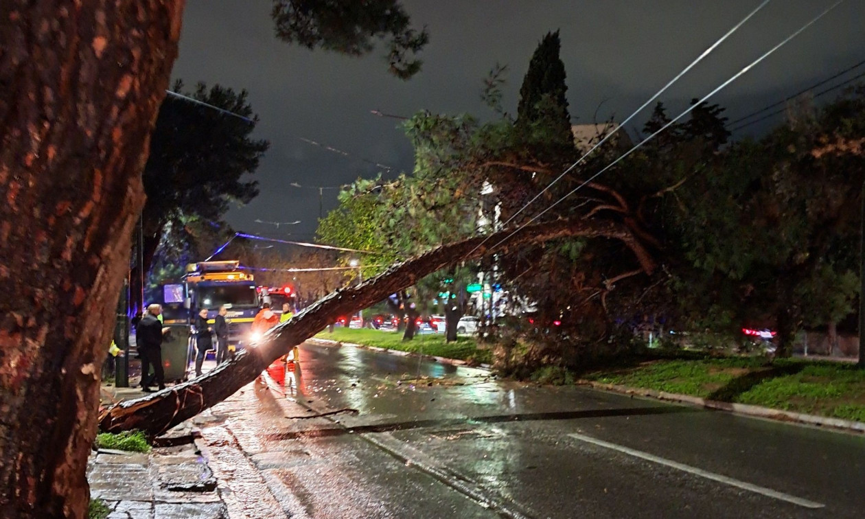 Το περιστατικό σημειώθηκε πριν τις 17:00 και, ευτυχώς, δεν σημειώθηκαν τραυματισμοί, καθώς ο κορμός του πεύκου βρήκε αντίσταση στα καλώδια του τρόλεϊ που συγκράτησαν το βάρος του.