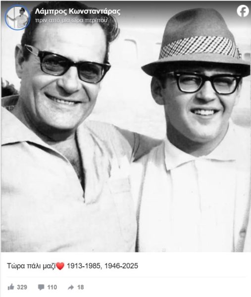 Θάνατος Δημήτρη Κωνσταντάρα: «Τώρα πάλι μαζί» γράφει ο γιος του Λάμπρος, για τον πατέρα και τον παππού του σε νέα του ανάρτηση