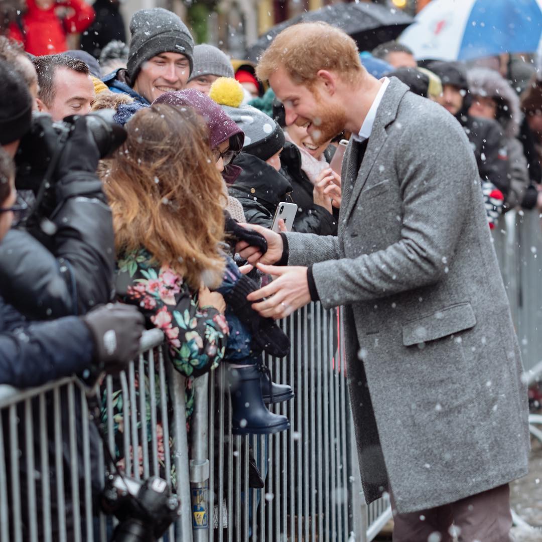 Ο δούκας και η δούκισσα του Σάσεξ δεν φάνηκαν να ενοχλούνται από τις αντίξοες συνθήκες και έπιασαν κουβέντα με ορισμένους από τους θαυμαστές τους, που περίμεναν υπομονετικά την άφιξή τους, παρά το χιόνι που έπεφτε.