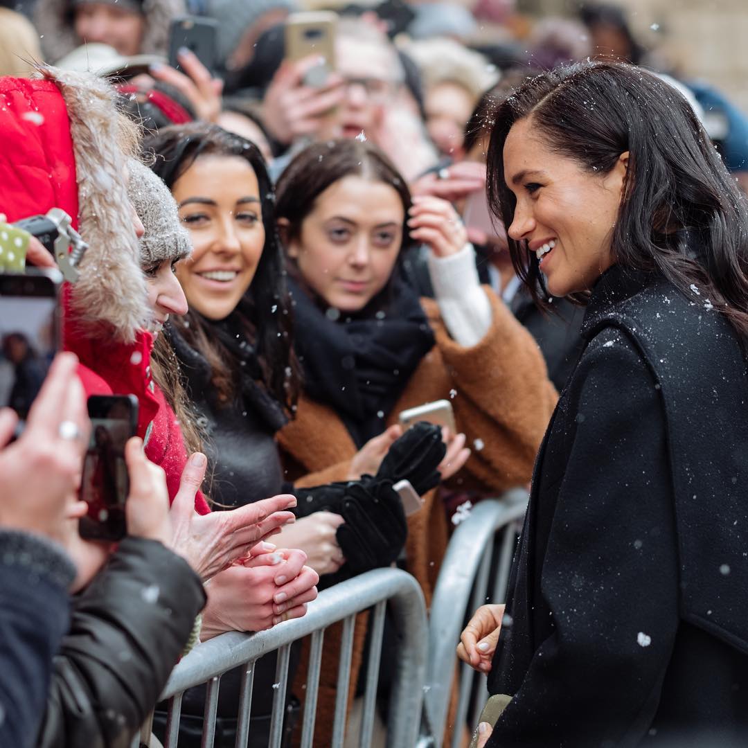 «Ελπίζω όλοι να πιουν ένα ωραίο ζεστό τσάι έπειτα από εδώ» είπε η Μέγκαν, η οποία ζήτησε συγγνώμη από έναν θαυμαστή της επειδή τα χέρια της ήταν κρύα. «Το τρένο μας καθυστέρησε λίγο, αλλά βάλαμε τα δυνατά μας για να έρθουμε εδώ γρήγορα» συμπλήρωσε η πρώην ηθοποιός.