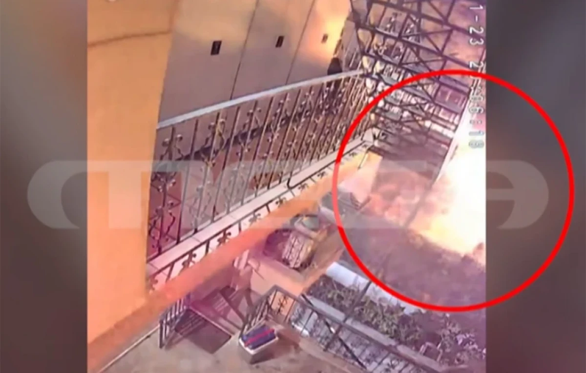 Σε σχετικό βίντεο που πρόβαλε, ακούγεται η έκρηξη -τοποθετήθηκε διπλός εμπρηστικός μηχανισμός στο όχημά του-, που σημειώθηκε έξω από το σπίτι του.