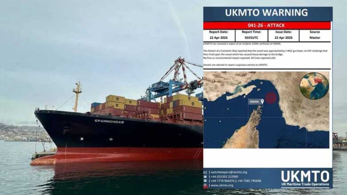 Η Technomar Shipping Inc. («Technomar») επιβεβαιώνει ότι το υπό διαχείρισή της πλοίο, Epaminondas (IMO: 9153862), ενεπλάκη σε περιστατικό ασφαλείας. Το πλοίο διέσχιζε το Στενό του Ορμούζ όταν προσεγγίστηκε και δέχθηκε πυρά από επανδρωμένο ταχύπλοο σκάφος, περίπου 20 ναυτικά μίλια ανοιχτά των ακτών του Ομάν, γύρω στις 06:50 τοπική ώρα στις 22 Απριλίου 2026.