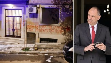 “Ντου” αναρχικών με φυλλάδια, συνθήματα και μπογιές στο γραφείο του Γιώργου Γεραπετρίτη στο Κέντρο της Αθήνας
