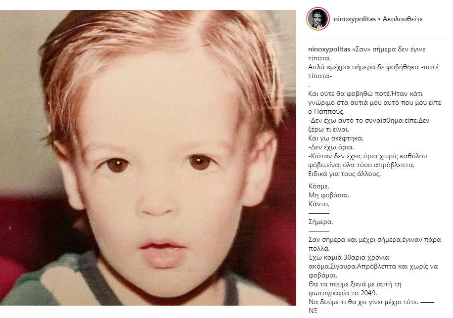 Τα ξημερώματα της Δευτέρας, ο Νίνο έκανε μια ανάρτηση όλο νόημα στον προσωπικό του λογαριασμό. Συγκεκριμένα, δημοσίευσε μια φωτογραφία από την παιδική του ηλικία και στη λεζάντα που την συνόδευε έγραψε ένα μακροσκελές κείμενο.