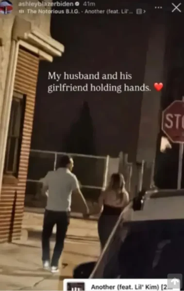 Η εξέλιξη ήρθε μόλις λίγες ώρες μετά από μια αινιγματική ανάρτηση στο Instagram από τον λογαριασμό της Μπάιντεν, που φαινόταν να στοχεύει τον σύζυγό της. Η ανάρτηση, που διαγράφηκε σύντομα, έδειχνε ένα ζευγάρι να περπατά χέρι-χέρι, με τη λεζάντα: «Ο άντρας μου και η φίλη του κρατιούνται χέρι-χέρι». Η ανάρτηση συνοδευόταν από το τραγούδι «Another» του Notorious B.I.G. με τη Lil’ Kim, στο οποίο ακούγεται ο στίχος: «What do you do when your man is untrue? Do you cut the sucker off and find someone new?»