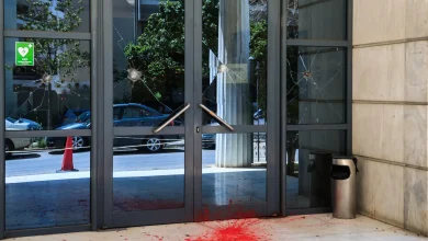 Εφετείου Αθηνών: Κουκουλοφόροι επιτέθηκαν με κόκκινη μπογιά και έσπασαν με βαριοπούλες τις τζαμαρίες της εισόδου