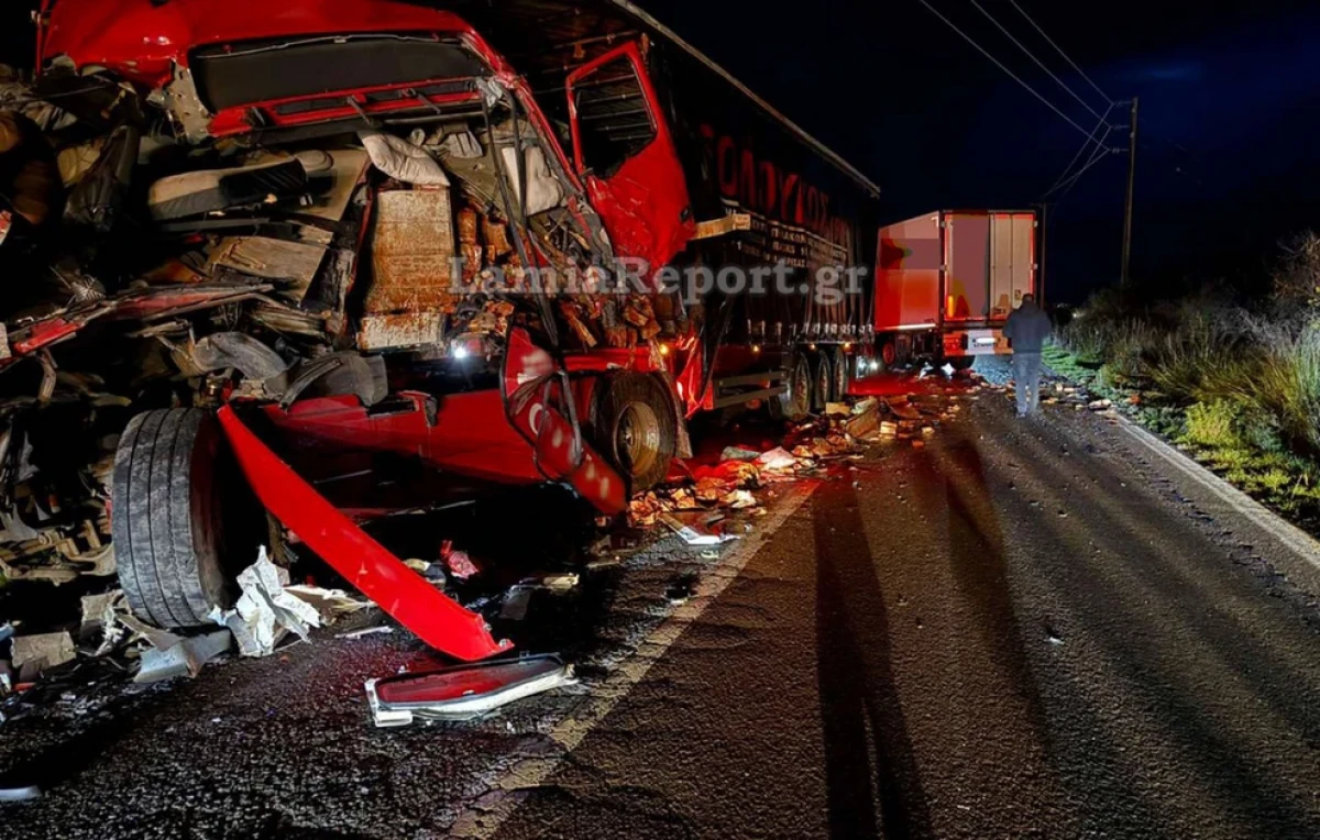 Σύμφωνα με το ρεπορτάζ, νταλίκα με πινακίδες Πολωνίας κινούνταν με κατεύθυνση προς Λαμία, όταν από αδιευκρίνιστο λόγο έφυγε στο αντίθετο ρεύμα και συγκρούστηκε μετωπικά με άλλη νταλίκα που οδηγούσε Έλληνας γύρω στα 60 ο οποίος κινούνταν προς Λιβαδειά.