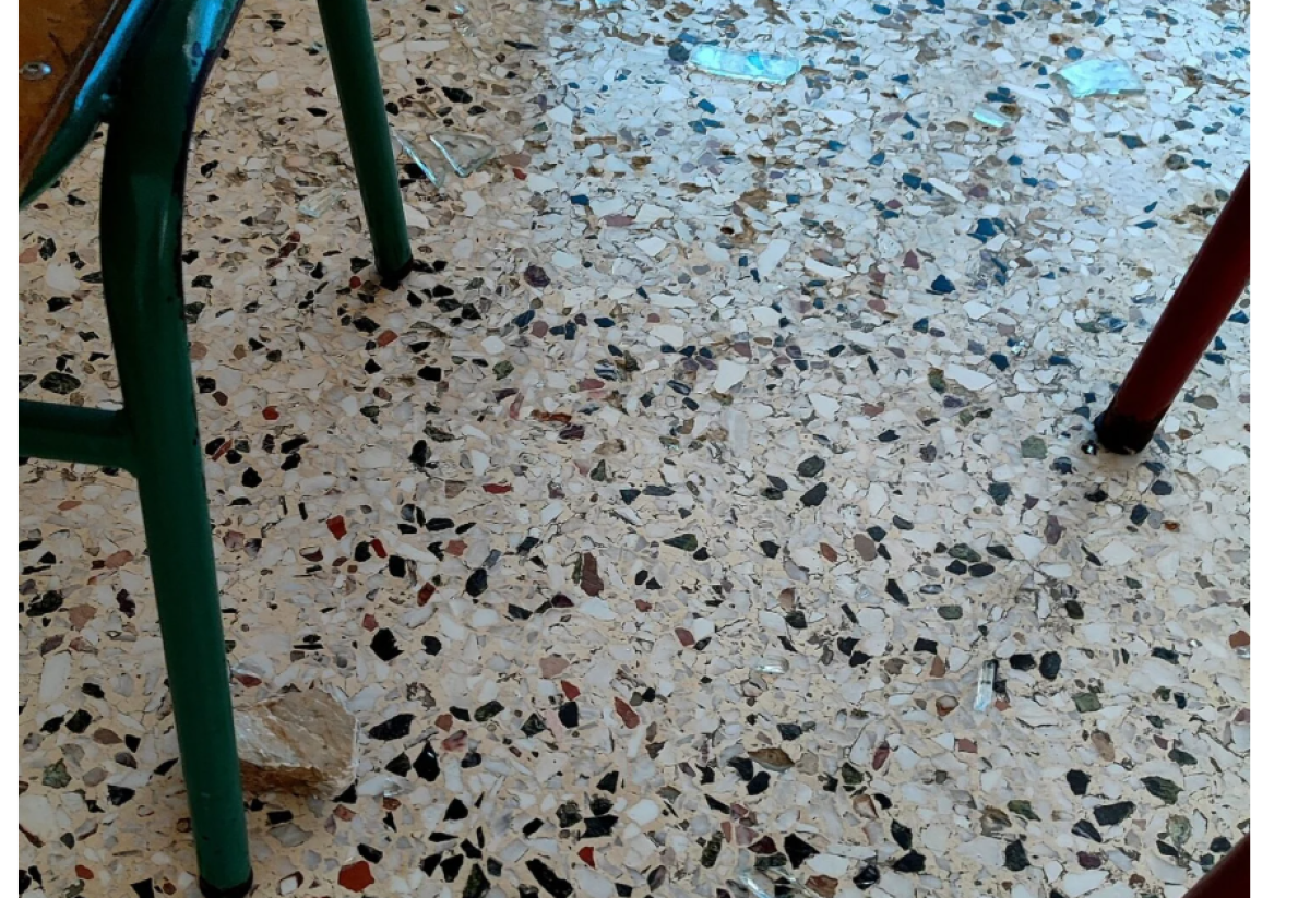 Συγκεκριμένα, πέτρα εκτοξεύθηκε μέσα σε αίθουσα διδασκαλίας, με αποτέλεσμα να σπάσουν δύο τζάμια που πρόσφατα είχαν αντικατασταθεί από προηγούμενο βανδαλισμό, ενώ εντοπίστηκε και μπάλα στον ίδιο χώρο.