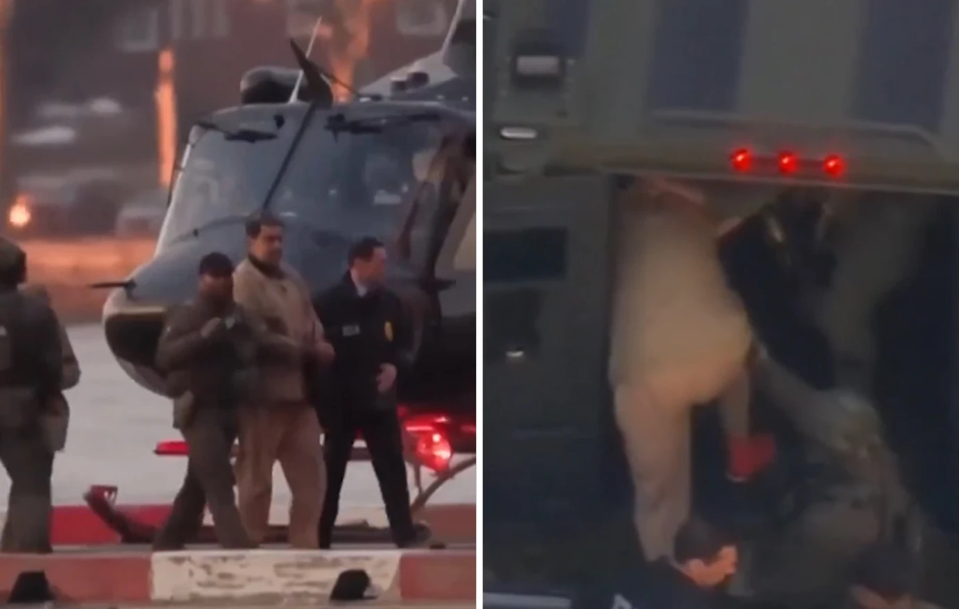 Το γύρο του διαδικτύου κάνει ένα βίντεο που δείχνει τη στιγμή της μεταγωγής του Μαδούρο. Ένοπλοι αστυνομικοί τον βάζουν με χειροπέδες μέσα σε ένα όχημα και τότε ένας αστυνομικός τον αναγκάζει να γονατίσει.
