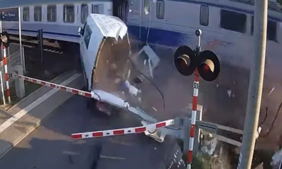 Βίντεο-σοκ: Οδηγός παραβίασε κόκκινο τη στιγμή που κατέβαιναν οι μπάρες και συγκρούστηκε με διερχόμενο τρένο