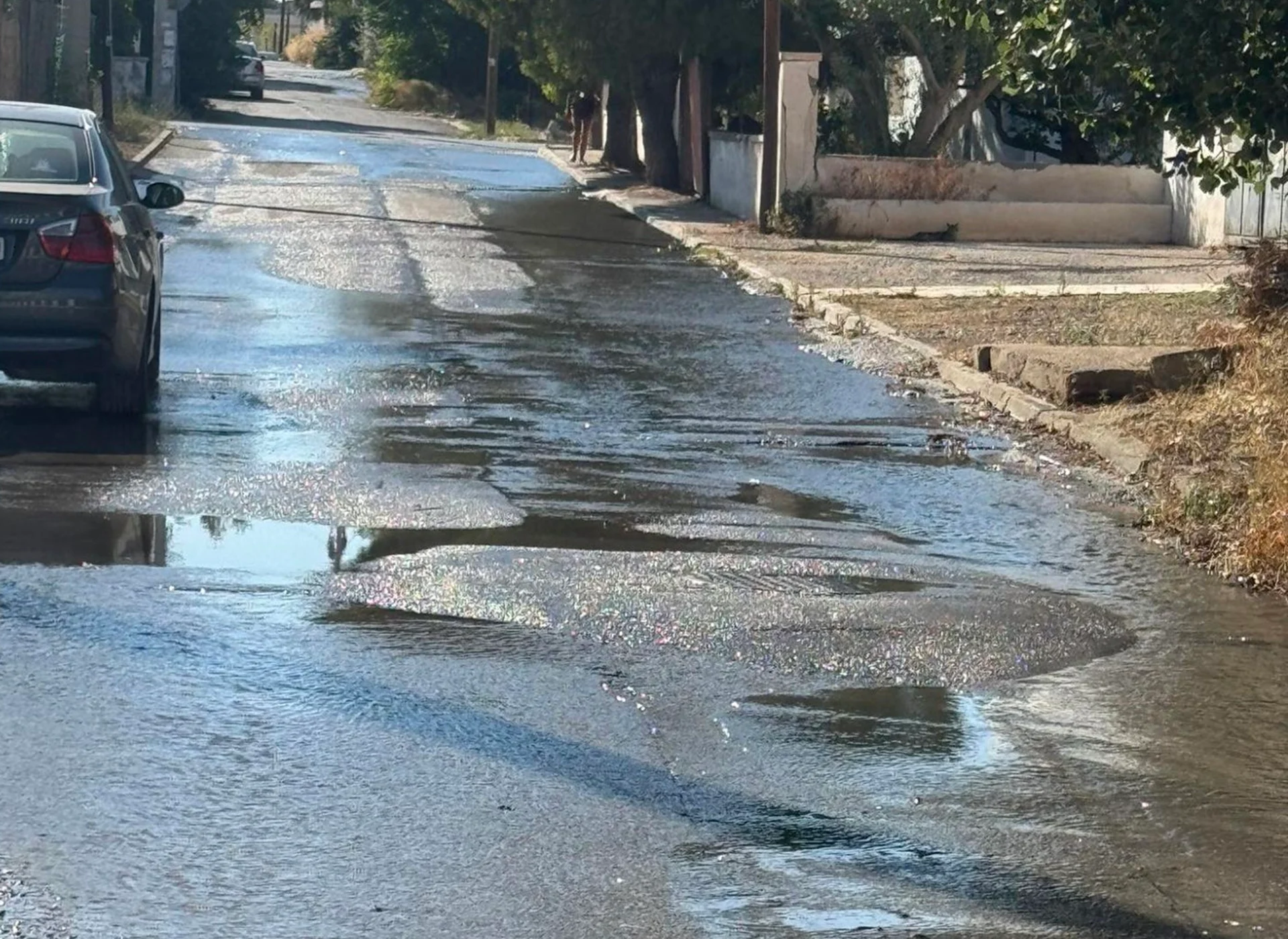Σοβαρό περιστατικό διαρροής το μεσημέρι της Δευτέρας 30 Ιουνίου στο κέντρο των Αμπελακίων Σαλαμίνας, με τη ζημιά να εντοπίζεται στην οδό Μπουμπουλίνας και να ξεκινά από τον κεντρικό δρόμο, την Ελευθερίου Βενιζέλου, έξω από το φαρμακείο.